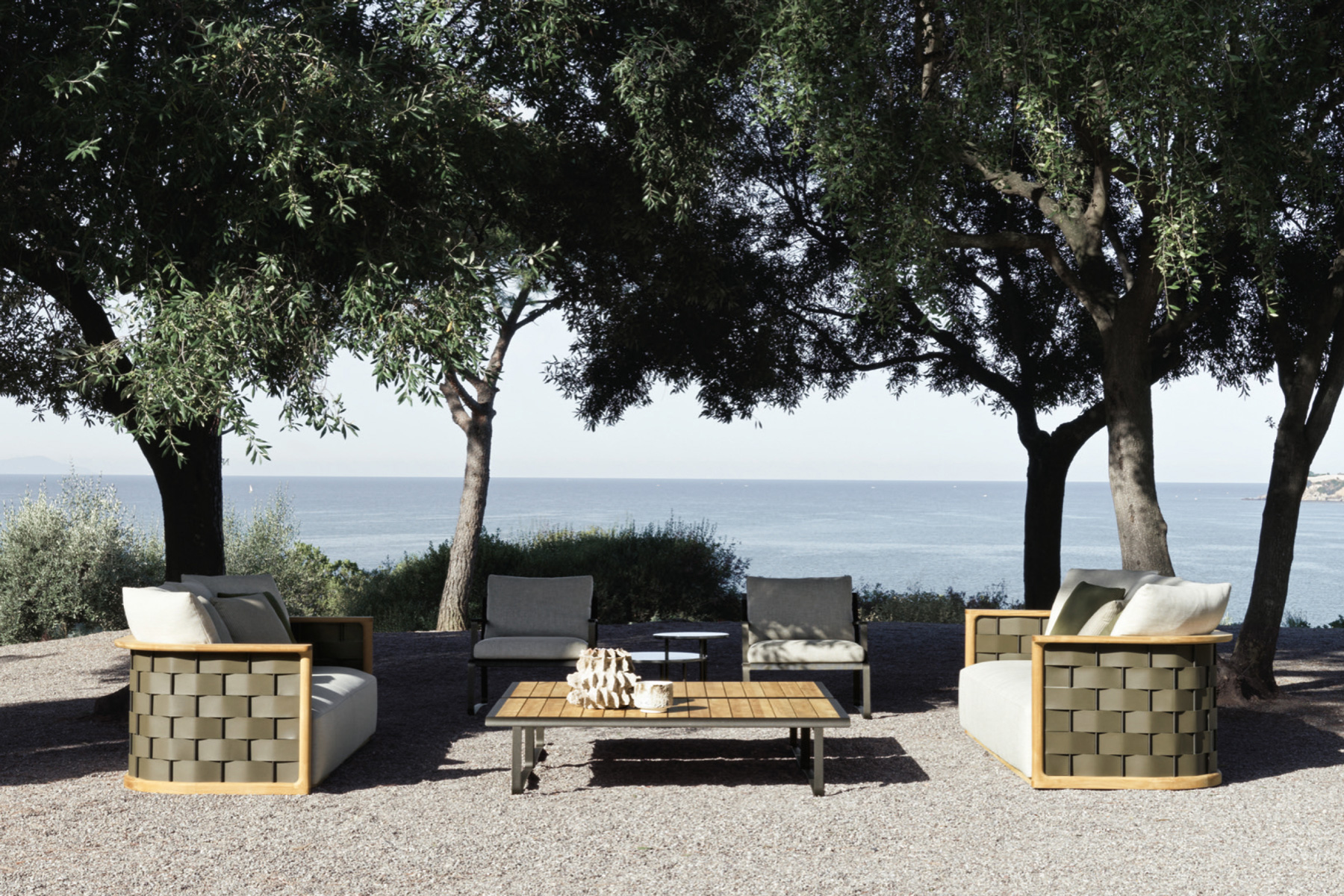 Por fim, e interligando todas as coleções, foram concebidos novos tapetes por Van Duysen, Nicola Gallizia e Marta Ferri - que criaram uma sofisticada e original coleção de têxteis para o exterior, definida por padrões subtis, tecidos ricos e tons quentes.